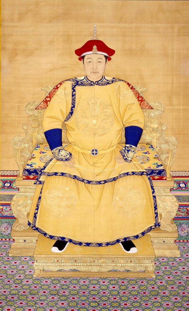 The imperial portrait of Hong Taiji, modelled after that of his father, Nurhaci.